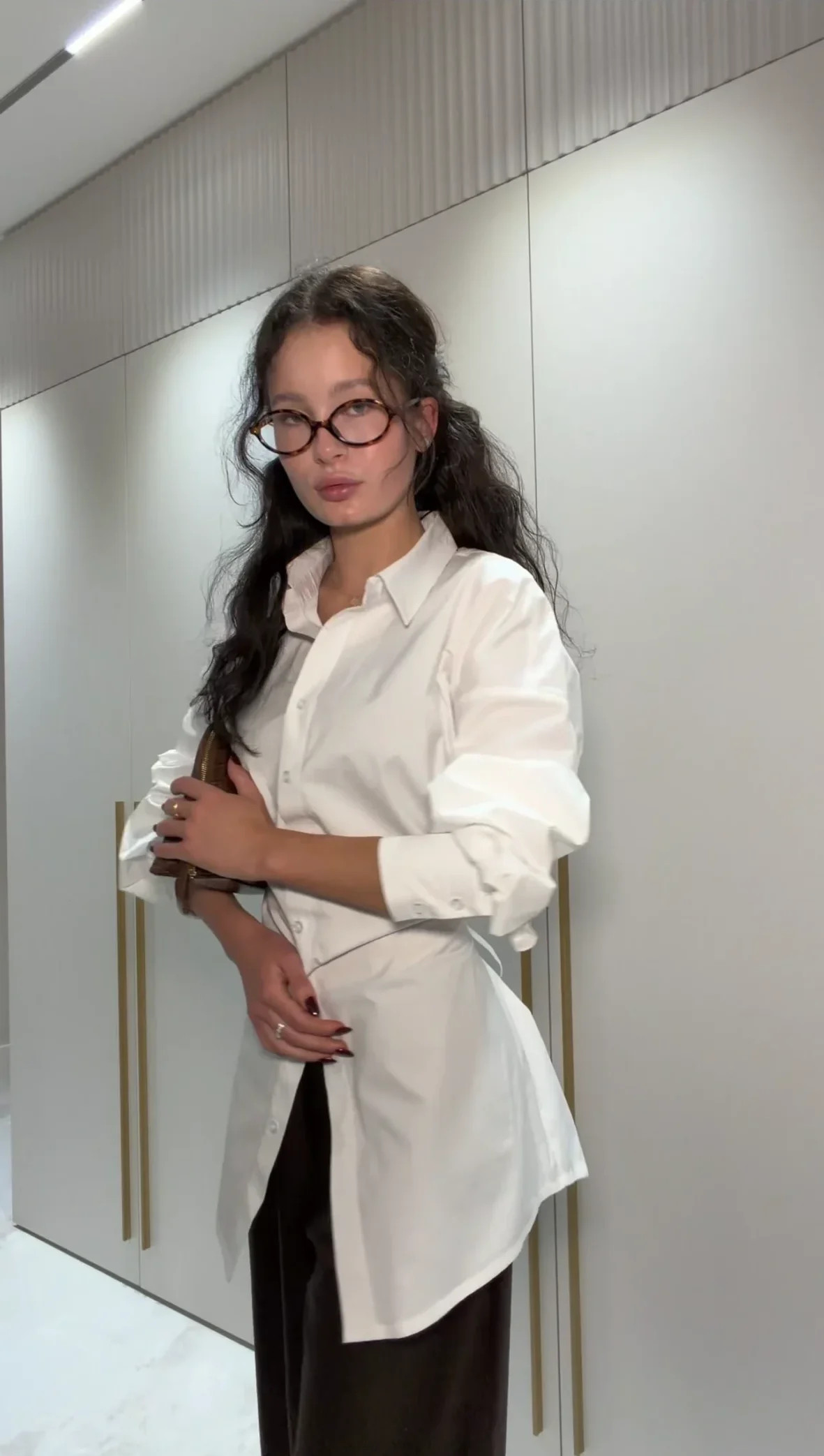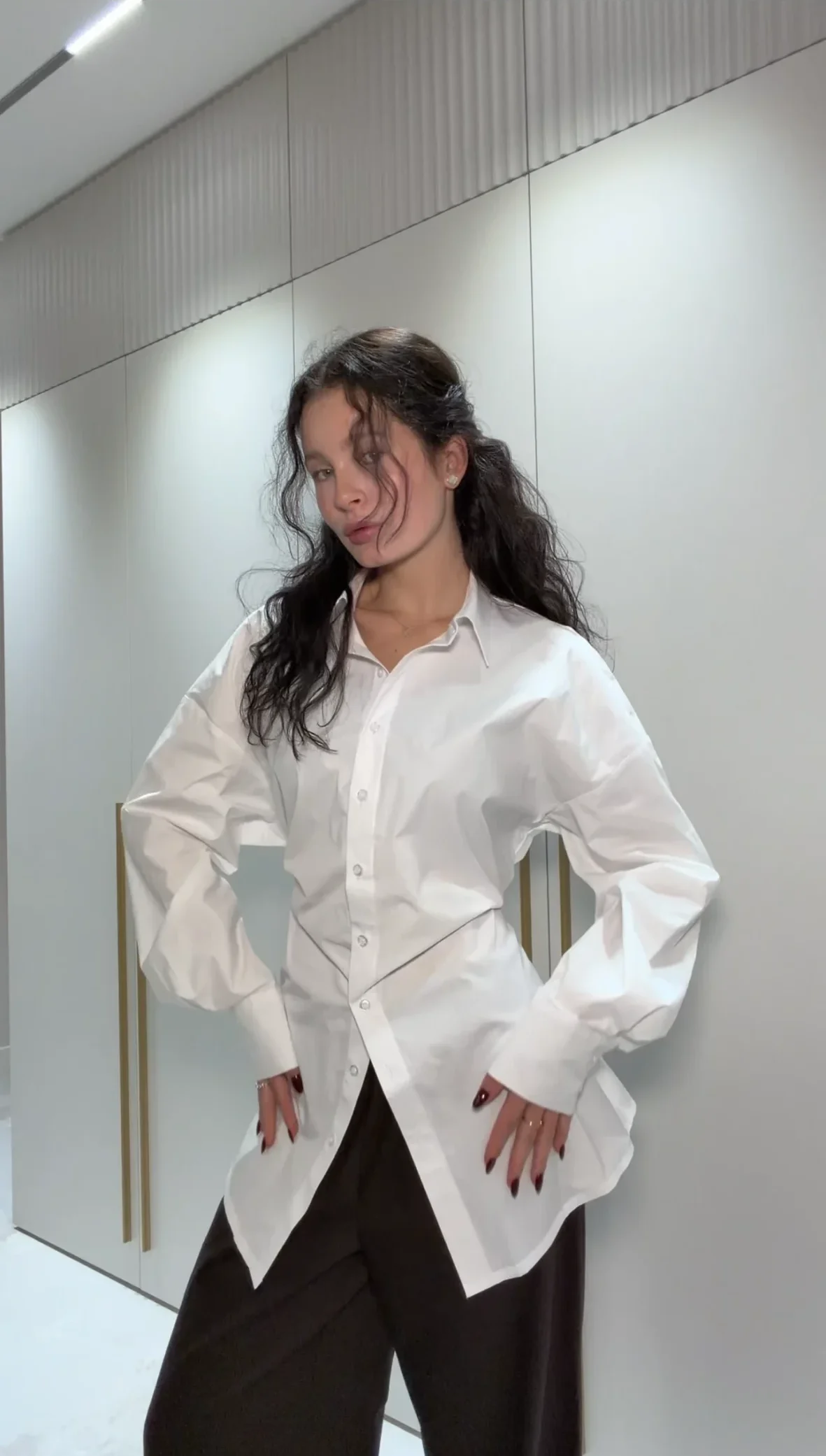 Костюм из Рубашки с плечиками и классическими брюками